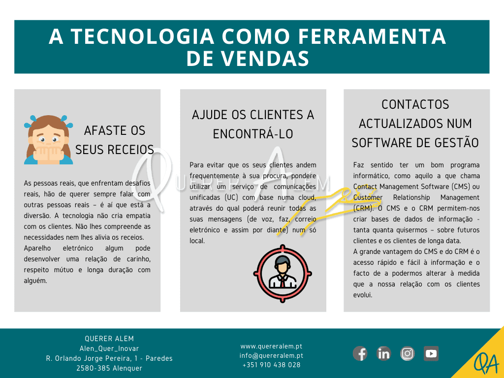 Faz sentido ter um bom programa informático, como aquilo a que chama Contact Management Software (CMS) ou Customer Relationship Management (CRM). O CMS e o CRM permitem-nos criar bases de dados de informação -tanta quanta quisermos – sobre futuros clientes e os clientes de longa data.