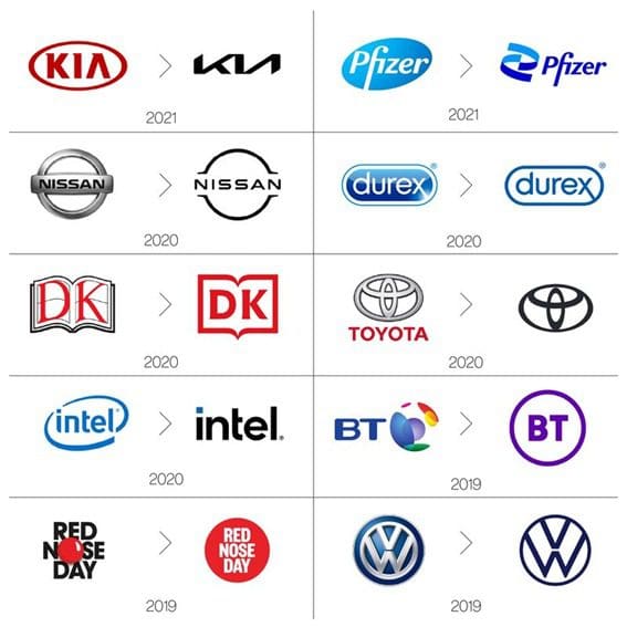 Num artigo de opinião da Bloomberg, o jornalista Ben Schott sublinha o regresso a soluções gráficas despojadas. Em vários casos, surgem logótipos retro que homenageiam décadas passadas, como sucedeu com a Burger King, por exemplo. Dito de outro modo, menos elementos podem significar mais clareza.