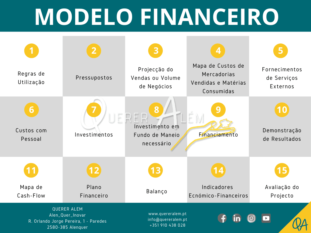 O modelo financeiro do Plano de Negócios é uma representação simplificada da realidade económica do seu activo, negócio ou mercado. Serve para compreender os mecanismos do negócio, do sector e os potenciais riscos, de modo a tomar decisões mais correctas e sustentar o planeamento.